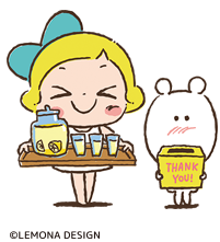 LEMONA DESIGNによるキャラクター。レモンの森で暮らす小さくておてんばな女の子「レモンちゃん」と、レモンちゃんに思いをよせる犬(?)のぬいぐるみ「シュガー君」。https://lemonsugar.jp/