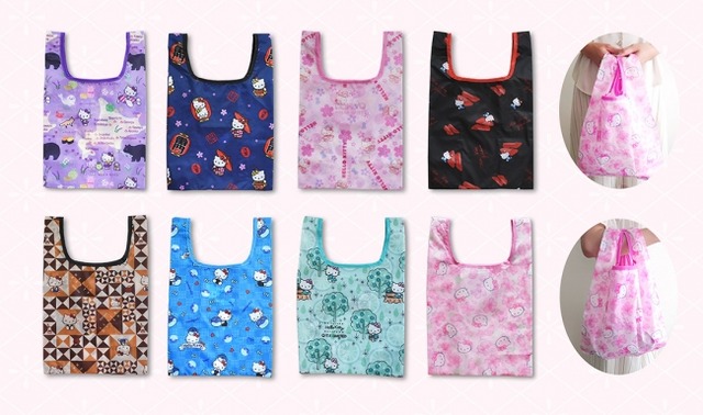 7月1日からのレジ袋有料化スタートに伴い、ますます出番が増えているエコバッグ。スーパーなど普段の買物では大きなエコバッグが便利ですが、コンビニや駅の売店など、ちょこっとした買物には小さめのミニエコバッグがお勧めです。弊社では、地域限定のハローキティ(ご当地キティ)がデザインされた、その地域でしか買えないミニエコバッグを発売いたします。地域限定発売なので、旅のお土産にもなるミニエコバッグです。