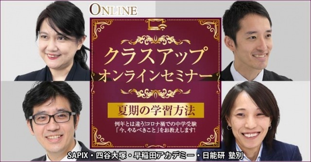 中学受験専門の個別指導塾・家庭教師である受験ドクターは、7月20日、21日、22日に「クラスアップオンラインセミナー」を開催します。SAPIX・四谷大塚・早稲田アカデミー・日能研の各塾別に対応したクラスアップの対策、ノウハウをお伝えします。