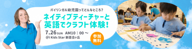 7月26日(日)未就学児・保護者向けにネイティブ講師と楽しむクラフト体験&子育てセミナーを開催