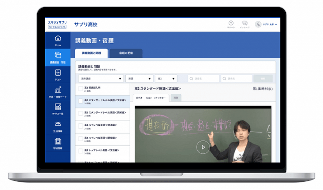 『学校向けのスタディサプリ』では、教職員向けの機能『スタディサプリfor TEACHERS』をご提供することで、学習を児童・生徒頼りにするのではなく、宿題配信や進捗管理、コミュニケーション機能を活用し、先生方からの学習の伴走・サポート、よりよい指導の実現を目指しています。