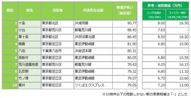1位の十条、3位の東十条は、池袋や新宿、東京など都心ターミナル駅から近いにも関わらず、他地域を抑え上位に