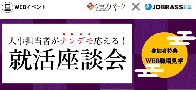 『JOBRASS新卒』に会員登録いただいた就活生は、「就活セミナー・イベント」ページより予約の上、PC又はスマートフォンより参加が可能です。詳細は、『JOBRASS新卒』のサイトからご確認ください。