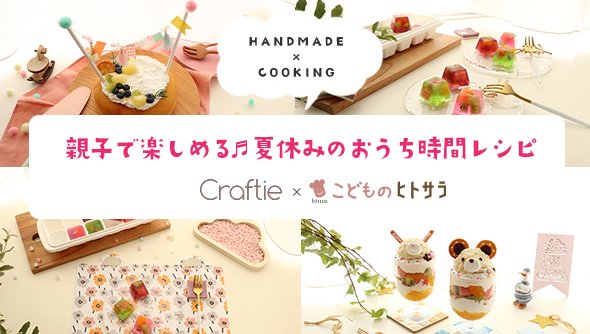 これから始まる夏休み、お子さんも大好きなおやつタイムを一緒に手作りで楽しんでみてはいかがですか? 今回、夏休み特別企画としてCraftieが運営するハンドメイドレシピメディア「Craftie Style」(https://craftie.jp/style )と、USEN–NEXT GROUPの株式会社 USEN Media(本社:東京都品川区、代表取締役社長:成内英介)運営の子連れにおすすめのお店やお料理レシピなど、ママに役立つ情報メディア「こどものヒトサラ」(https://kodomo.hitosara.com )とのコラボレーション企画が実現しました。