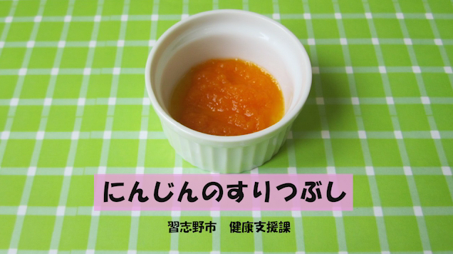 「10倍がゆの炊き方」、「10倍がゆのすりつぶし」、「野菜スープの作り方」、「にんじんのすりつぶし」、「ほうれん草のすりつぶし」、「つぶし豆腐」、「あんの作り方」、「ほうれん草と豆腐のくず煮」