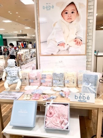 神戸子供アパレル「株式会社べべ」の百貨店向け新生児ブランド「fillot de bebe reduction(フィヨ デュ ベベ ルダクティオン)」が、2020年春夏物のセール商品・通年定番の無撚糸タオルシリーズ・ガーゼシリーズ・2020秋物新作と、15坪の売場にフルラインナップを展開しています。