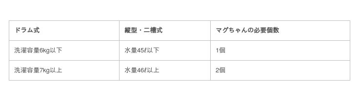 ◆洗たくマグちゃんLの必要個数の目安
