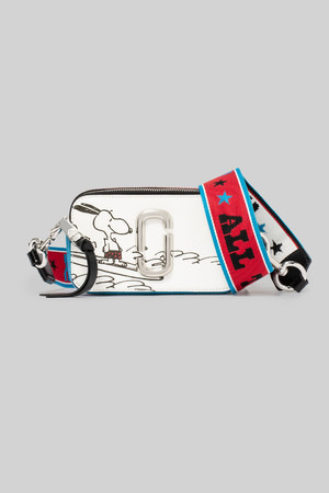 左から、THE SNAPSHOT PEANUTS AMERICANA ¥51,000/ PEANUTS × THE MARC JACOBS T-SHIRT ¥18,000/ THE TOTE BAG PEANUTS AMERICANA ¥33,000, THE BOX PEANUTS AMERICANA ¥71,000 ともに伊勢丹新宿店・阪急うめだ本店先行販売/ ※全て税抜価格