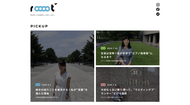 NPO法人パフォーマンスバンク(代表理事 鈴木浩之)、及び、株式会社パラドックス(本社:東京都港区、代表取締役:鈴木 猛之)は、卒業後のキャリアに悩む音大生が、音楽だけにとどまらないキャリアや生き方を見つけるためのウェブマガジン『roooot』(https://roooot.work/)を鍵盤の日である8月8日にオープンします。