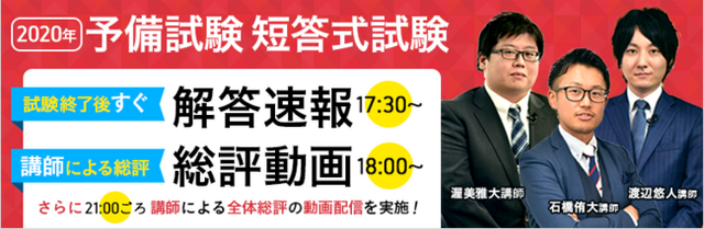 新型コロナウイルス感染症の影響で、2020年の司法試験・予備試験 短答式試験実施日が5月17日から8月16日へと延期になりました。試験日が変更となったことで、学習のペースをつかめず、ご不安な受験生の皆さまも少なくないかと思います。そんな皆さまを応援するべく、解答速報を公開いたします。