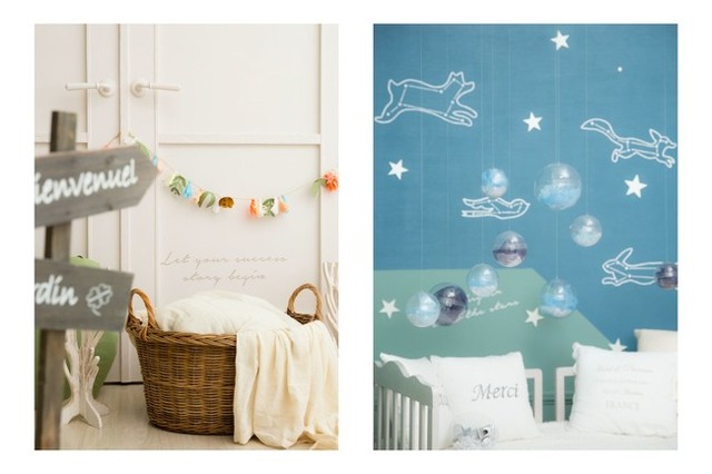 大きなベッドの周りには、キラキラなおほしさまがいっぱい。どんな星座を見つけられるかな?