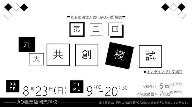 共創学部の総合型選抜入試(旧AO入試)を徹底的に分析し、本番同等レベルの講義・試験内容をご用意いたしました!今回の模試に参加すれば、AO入試本番で求められる力を体感できます。