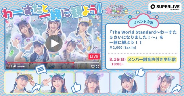 株式会社CyberZ(本社:東京都渋谷区、代表取締役社長:山内隆裕)が提供する動画配信プラットフォーム「OPENREC.tv」(オープンレックティービー)は、エイベックス・マネジメント株式会社に所属する女性ダンス&ボーカルグループ「わーすた」が2020年3月28日(土)に開催した「The World Standard~わーすた 5さいになりました!~」ライブ映像の配信を2020年8月16日 (日)におこなうことをお知らせいたします。