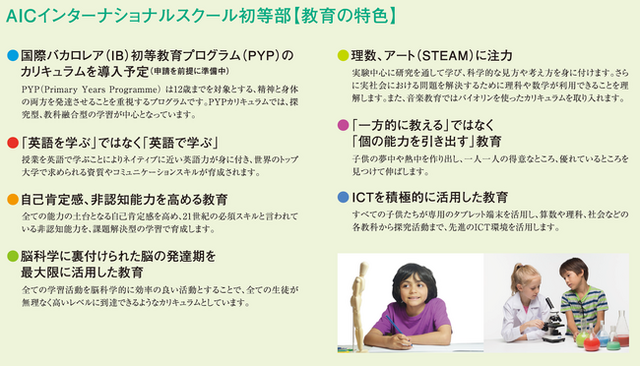 AIC インターナショナルスクール初等部 http://aickinder.com/aicpyp/
