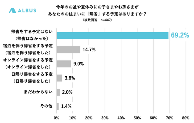 1.今年の夏休み、69.2%が『子どもや孫の帰省(予定)なし』