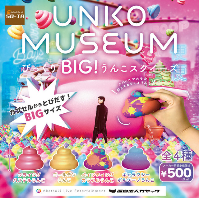 新型コロナウイルス感染拡大により、うんこミュージアムTOKYOに行きたくても行けない全国のウンカーの皆様に、この「びっくりBIG!うんこスクイーズ」でうんこの可愛さとぷにぷに感触をお家で楽しんでいただきたいと考えています。