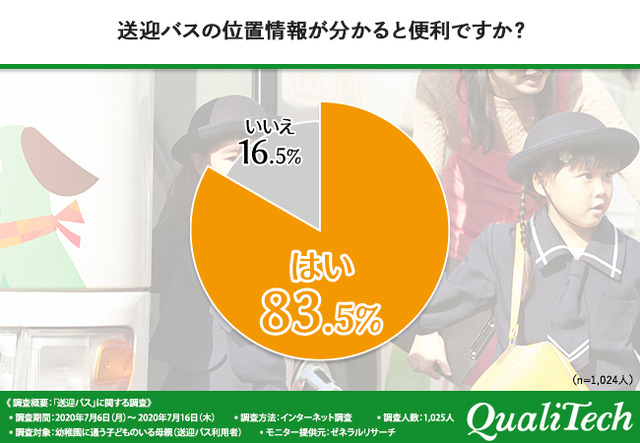「送迎バスの位置情報が分かると便利ですか?」と質問したところ、なんと8割以上が『はい(83.5%)』と回答しました。