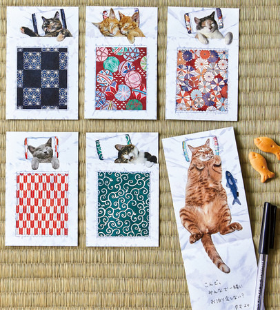 やさしくお布団を掛けるように折りたためば、ひみつにしておきたい伝言も、猫さんの前足が掛け布団を押さえて、ピタッと守ってくれます。