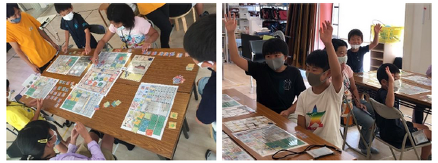 2020年8月23日(日)に実施した「子ども未来キャリア」体験会では、120分を通して「友達と協力する大切さを知る」ことをテーマにした新しい教材を用いたゲームを行い、ファンファンキッズに所属している小学2年生から6年生までの計9名が2チームに分かれて参加しました。ゲームではまず、それぞれの子どもが自分の担当する国にいる病人を治療するために、畑を開拓し、薬草を育て、クスリを作っていきます。ゲームが進むと、自分の国で開発できるクスリでは治療できない病人がいることに気付き始め、他の子どもたちと薬草やクスリを交換することで、自分の国の病人を治療していきます。チーム全員の国から病人がいなくなるよう、チーム全員で協力していきます。今回の体験会は特に子ども達が意見を出し合う場面が多く、今まで以上に盛り上がりを見せました。通常のゲームでは勝ち負けを競うことが目的となり自分本位になりやすくなる一方で、体験会では「みんなで協力すること」によって得られるメリットの大きさに気づくことができました。さらに、独り勝ちによる優越感だけではなく、みんなで目標をクリアする達成感を得られました。