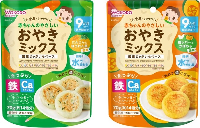 アサヒグループ食品株式会社(本社 東京、社長 尚山勝男)は、水を入れて混ぜ、丸めて焼くだけで簡単にできる『赤ちゃんのやさしいおやきミックス にんじんとほうれん草』『赤ちゃんのやさしいおやきミックス 鶏レバーとかぼちゃ』を9月7日より全国で新発売します。また2016年より発売し、手軽に調理できるとご好評の「赤ちゃんのやさしいホットケーキミックス」シリーズも9月初旬にリニューアル発売します。