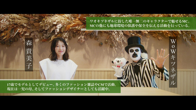 ・出演:森貴美子(モデル)、WoWキツネザル(環境エンターテイナー)