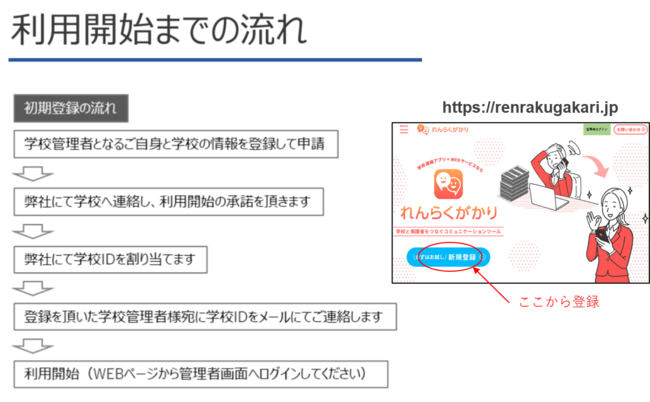 学校の登録申請(学校へ連絡し承諾を得て、IDを割当てます)