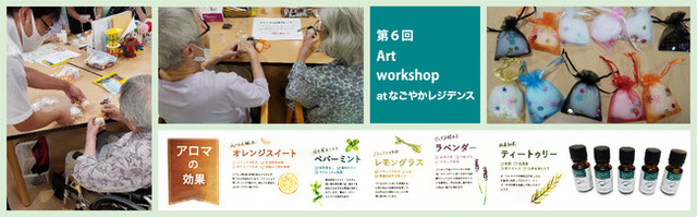 6回目の開催となった今回は、厳選したアロマオイルを用いて、「におい袋」を制作しました。人間の五感のうち「嗅覚」は唯一、情動に直接伝わる感覚です。「香り」は0.5秒で脳に届くと言われています。嗅覚を刺激することで脳の記憶を誘発させて認知機能の活性化に繋げようという試みでもあります。また、天然植物から抽出した香り成分であるアロマオイルを使ったアロマテラピーは、自然療法として、心身のトラブルを穏やかに回復する効果があることが知られており、認知症予防や初期の認知症症状の改善に繋がる事例も報告されています。