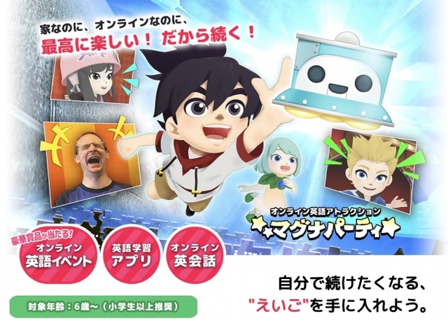 『マグナパーティ』とは、自宅でオンラインで最高に楽しく英会話に直結する英語を体験できる、次世代のオンライン英語アトラクションです。現在、どなたでも無料体験イベント『マグナとふしぎのロボ』がお試し可能です。