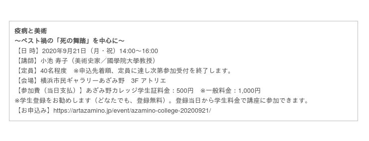 「疫病と美術 ~ペスト禍の「死の舞踏」を中心に~」