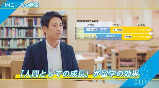 動画では、昨今、グローバル人材の育成が叫ばれる中、同校のIMコースを担当する川本健太郎部長が、真のグローバル教育では、単なる英語力の育成に留まらず、国際社会の中でコミュニケーション能力全体を向上させる必要があると指摘。