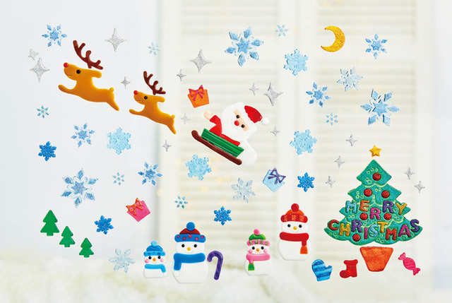 窓や鏡に貼るだけで簡単にお部屋のディズプレイができるので、手軽にできるクリスマスの装飾としておすすめです!何枚か組み合わせて貼るとより華やかになります!