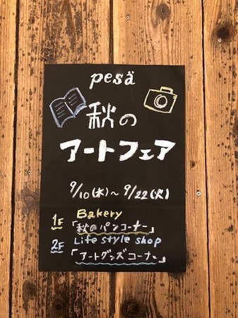 9月10日(木)~9月22日(火)子育てママのためのライフスタイルショップ&ベーカリー「pesa(ペサ)」(大阪市西区南堀江)にて、秋のアートフェアを開催いたします。