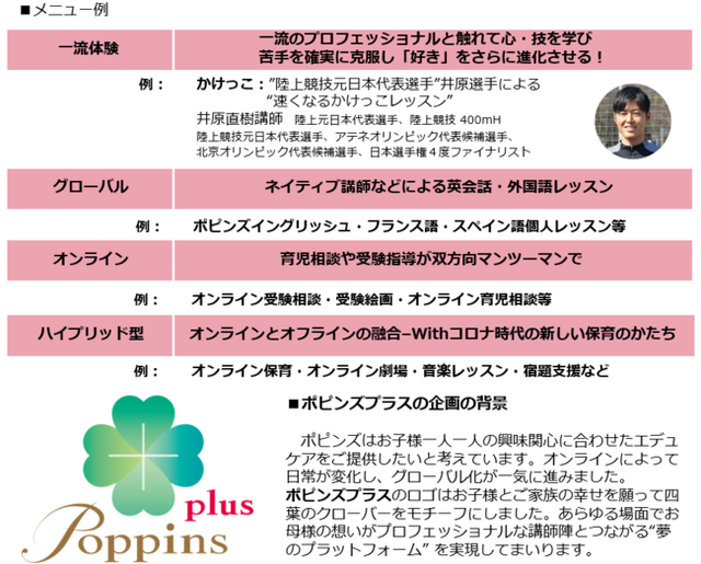 毎月新しいプログラムが続々登場していきます。 (https://www.poppins.co.jp/poppinsplus/)