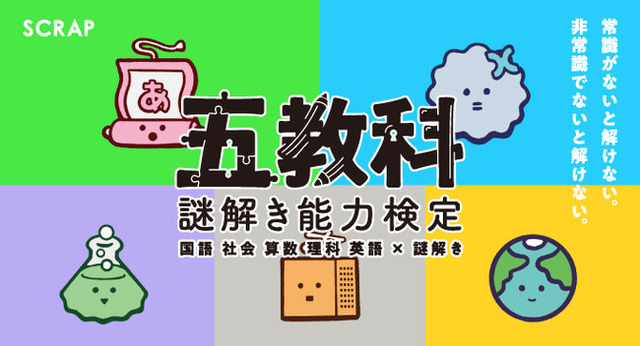 株式会社SCRAP(所在地:東京都渋谷区、代表:加藤隆生)は、「第2回五教科謎解き能力検定(略称:五教科謎検)」を2020年11月2日(月)より開催することを発表いたします。