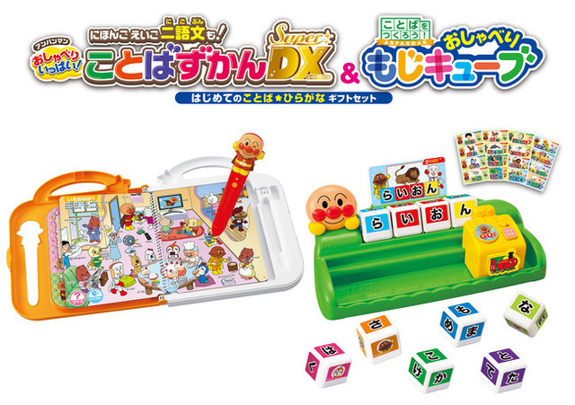 株式会社セガトイズ(本社:東京都台東区、社長:佐々木章人、以下セガトイズ)は、発売から10周年を迎え、150万台突破した「アンパンマンおしゃべりいっぱい!ことばずかんSuperDX」に、“ことば”を覚えてから“もじ”を覚えるという、習得時の流れを遊びながら自然に学べる新商品『アンパンマンことばをつくろう!おしゃべり もじキューブ』をセットにした、『にほんごえいご二語文も!アンパンマンおしゃべりいっぱい!ことばずかんSuperDX&ことばをつくろう!アンパンマンおしゃべり もじキューブはじめてのことば・ひらがなギフトセット』を2020年11月5日(木)に発売することを決定しました。
