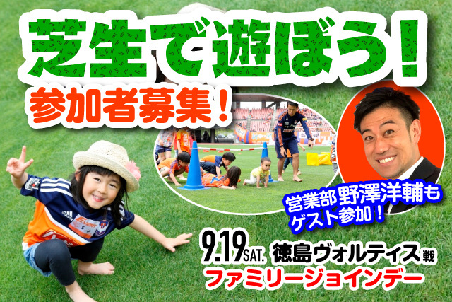 9月19日(土)徳島ヴォルティス戦で行われる「ファミリージョインデー」特別企画として、デンカビッグスワンスタジアムのメインピッチの天然芝にのって楽しめるイベント「芝生で遊ぼう!」の参加者を募集します!