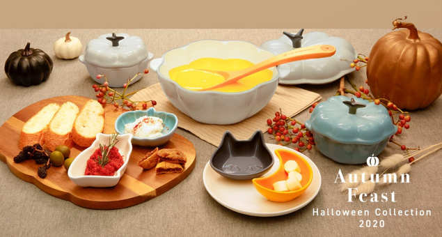毎年ル・クルーゼ ファンが待望する「ハロウィン コレクション」 が、この時期だけの限定品として今年も登場します。2020年のコレクションはこれまでのようにオレンジを立たせた製品ラインナップではなく、シーズナルのトーンを活かし、やさしいカラー(メレンゲ)や、秋らしいシックなカラー(シーソルト、フリント)など全体的に安らぎを感じられるカラー展開で、ハロウィンの時期のみに止まらず、幅広いシーンでテーブルを彩ることができるコレクションです。