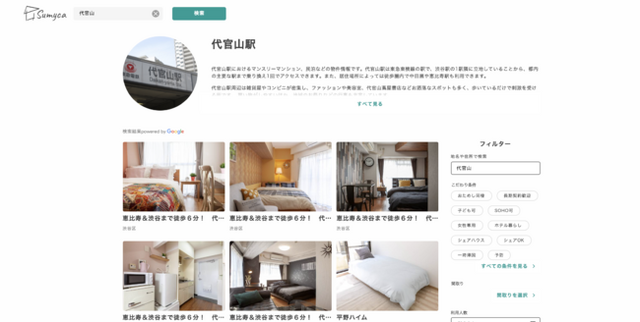 マンスリーマンションやホテル、民泊などを1日~(物件によっては1月から)オンラインで借りれるSumyca( サービスサイト:https://www.sumyca.com/ )は代官山エリアの国内最大級の物件を掲載している新大久保特設ページを開設いたしました。