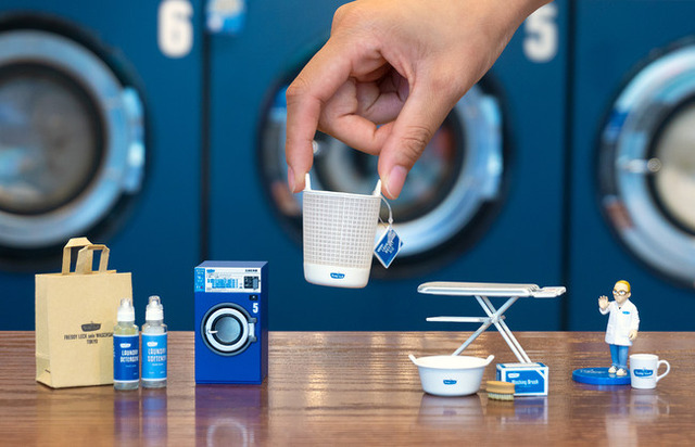 今回、ブランド日本展開10周年にあたり、東京のフィギュアメーカーである株式会社ケンエレファントとコラボレーション。 人気の「ランドリーバスケット ビッグ」をはじめとする洗濯用品、フレディ レック・ウォッシュサロン トーキョーのコインランドリー機器、そしてオーナーのフレディ レック氏が本物そっくりのミニチュアになりました!