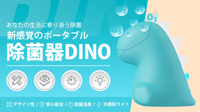 マイナスイメージが付きまとう“除菌”を少しでも楽しく。微笑む恐竜「DINO」が、残留物のないオゾンで、ほっこりできる安心をお届けします!