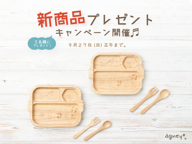 天然素材製品の製造販売を手掛ける仲吉商事株式会社(本社:東京都板橋区)は、ベビー・こども向けオリジナル食器の自社ブランド「agney*(アグニー) https://www.agney.jp」にて、「どうぶつプレート」「ラバーウッドスプーンS/フォークS」「ラバーウッドスプーンM/フォークM」を発表。9月末より、有名小売店をはじめ各通販サイトにて発売を開始いたします。発売に先駆け、 9月27日(日)正午までInstagramにて“新商品プレゼントキャンペーン”を開催。 抽選で5名様に新商品をプレゼントいたします。 (Instagram応募ページ▶︎https://www.instagram.com/p/CFGQRkoJ0PP/)