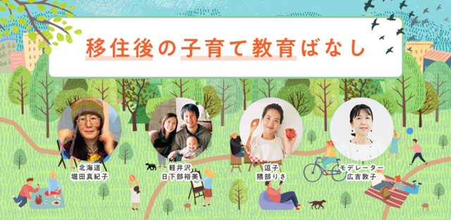 コロナ禍において、リモートワークが進み、オフィスに行かなくてもどこでも仕事ができることがわかってきました。企 業側も都心に高い家賃を払ってオフィスを借りるよりも色んなところで仕事をしてもらい、交通費を払ってでもお釣りが くることがわかり、オフイスを手放すことを考えるようになってきました。そうは言うものの、自然はあっても子育ては しやすいのか?またそこの学校の教育はどうなのか?なかなかそんな情報は入手しにくいのが現実です。まだ漠然と移住 を考えている方、もう移住先に今回の登壇者の住んでいる場所が候補にあがっている方など、ここでしか聞けない話が聞けます。