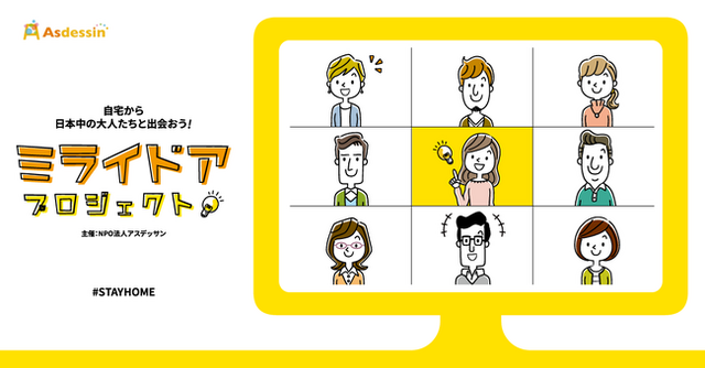 NPO法人アスデッサンは、中学校・高校の進路指導や総合的な学習の授業コンテンツとしてプログラムを提供し、社会人を講師として派遣するキャリア支援授業を行ってまいりました。コロナ禍の一斉休校があり、訪問型の授業実施が難しくなる中、withコロナ時代に合わせたオンラインプログラム「ミライドア(https://www.asdessin.org/miraidoor)」の開発を行いました。