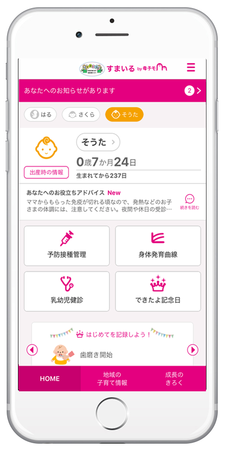 妊娠や子育てに関する情報配信だけでなく、予防接種の管理やお子さんの成長を記録するなど、“たけたん子育て”に役立てていただけるよう願っています。