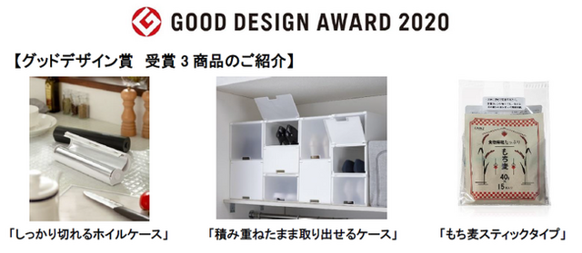株式会社カインズ(本社:埼玉県本庄市、代表取締役社長:高家正行)は、アルミホイルのカッターの機能を根本的に変えた「しっかり切れるホイルケース」、靴の収納に最適な「積み重ねたまま取り出せるケース」、個包装を計量用に活用した「もち麦スティックタイプ」のオリジナル商品3点が2020年度グッドデザイン賞(主催:公益財団法人日本デザイン振興会)を受賞いたしました。日々のくらしをより豊かに快適にする商品開発の取り組みが認められ、本年で9年連続の受賞となりました。これからも、カインズならではの商品・サービスで、お客様の「くらしに、ららら。」を提供してまいります。