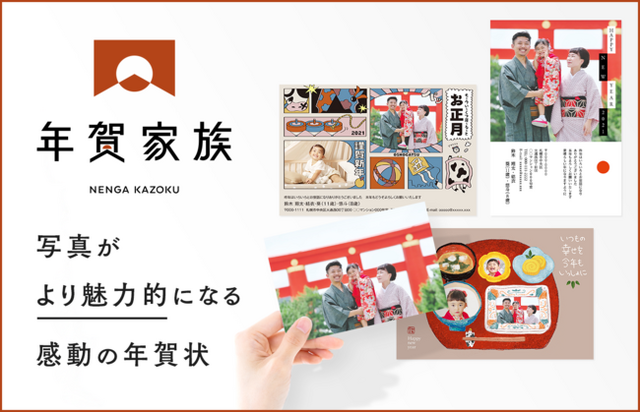 「年賀家族」は、そんな大切な人に送りたい、上質なこだわり写真年賀状を簡単に注文できるWEBサービスです。2021年向け新作年賀状デザインは125点、すべて自社クリエイターによるオリジナル作品です。年賀状デザインとご自身の写真、配色や賀詞などを順に選ぶだけで、オーダーメイドのように洗練された、こだわりの年賀状が簡単に作成できます。10万点以上のバリエーションすべてがベストバランスになるようデザインしています。