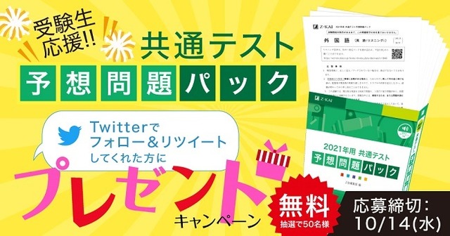 それに先立って、『共通テスト 予想問題パック』を抽選で50名様に無料でプレゼントするキャンペーンを実施し、受験生の皆さんを全力応援!