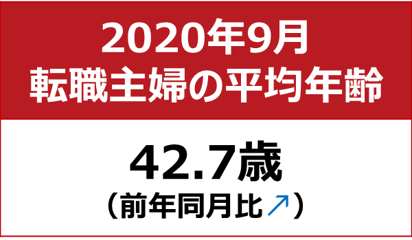 転職主婦の平均年齢は、前月比±0歳、前年同月比+0.7歳の42.7歳となった。