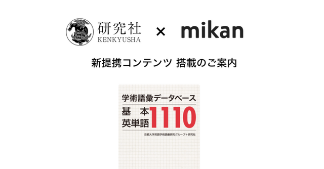 研究社刊「京大・学術語彙データベース基本英単語1110」からリストアップされた、大学レベルの学習・研究に必要とされる基本単語を「mikan」内で学習することでより効率的な学習体験を提供し、英語力の土台づくりを行うことを目的として、今回の連携にいたりました。