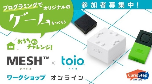 ソニー株式会社(以下、ソニー)は、7月より新たな教育プログラムCurioStep with Sony(キュリオステップ)を開始しました。クリエイティビティとテクノロジーを体験する機会の提供を通して子どもたちの好奇心を拡げ、創造性や問題解決力、多様性を受け入れる力の向上をサポートする教育プログラムです。このたび、2020年11月7日(土)~11月22日(日)の2週間にわたり、ソニーの2つのプログラミング関連製品のコラボレーションによるワークショップ、「おうちdeチャレンジ!MESHxtoioワークショップ オンライン」の開催が決定し、参加者の募集を開始いたしましたので、お知らせいたします。